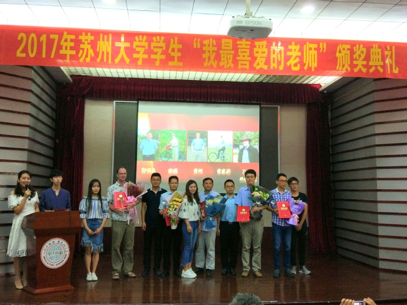 6月9日上午,2017年苏州大学学生“我最喜爱的老师”颁奖典礼在本部学术报告厅举行。我院黄建洪教授作为获奖教师参加了颁奖典礼,辅导员吴常歌和研究生、本科生代表到场观礼。