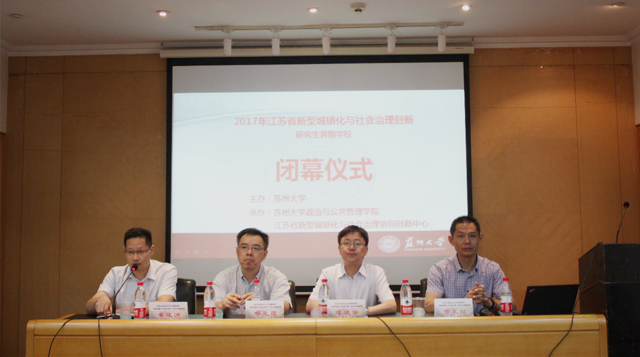 7月17日下午,由我校主办,政治与公共管理学院、江苏省新型城镇化与社会治理协同创新中心承办为期一周的2017年江苏省“新型城镇化与社会治理创新”研究生暑期学校在红楼115会议室圆满落下帷幕。