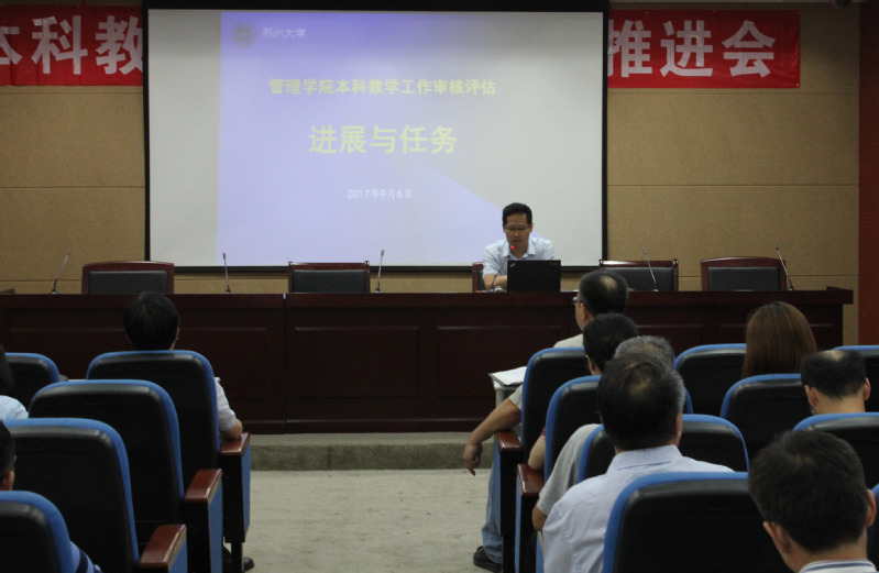 为进一步提高认识、统一思想,深入推进本科教学审核评估工作各项任务落实,9月6日下午,学院召开本科教学工作审核评估推进会。全院教职工、各班级学生代表参加了会议,会议由党委书记邢光晟主持。